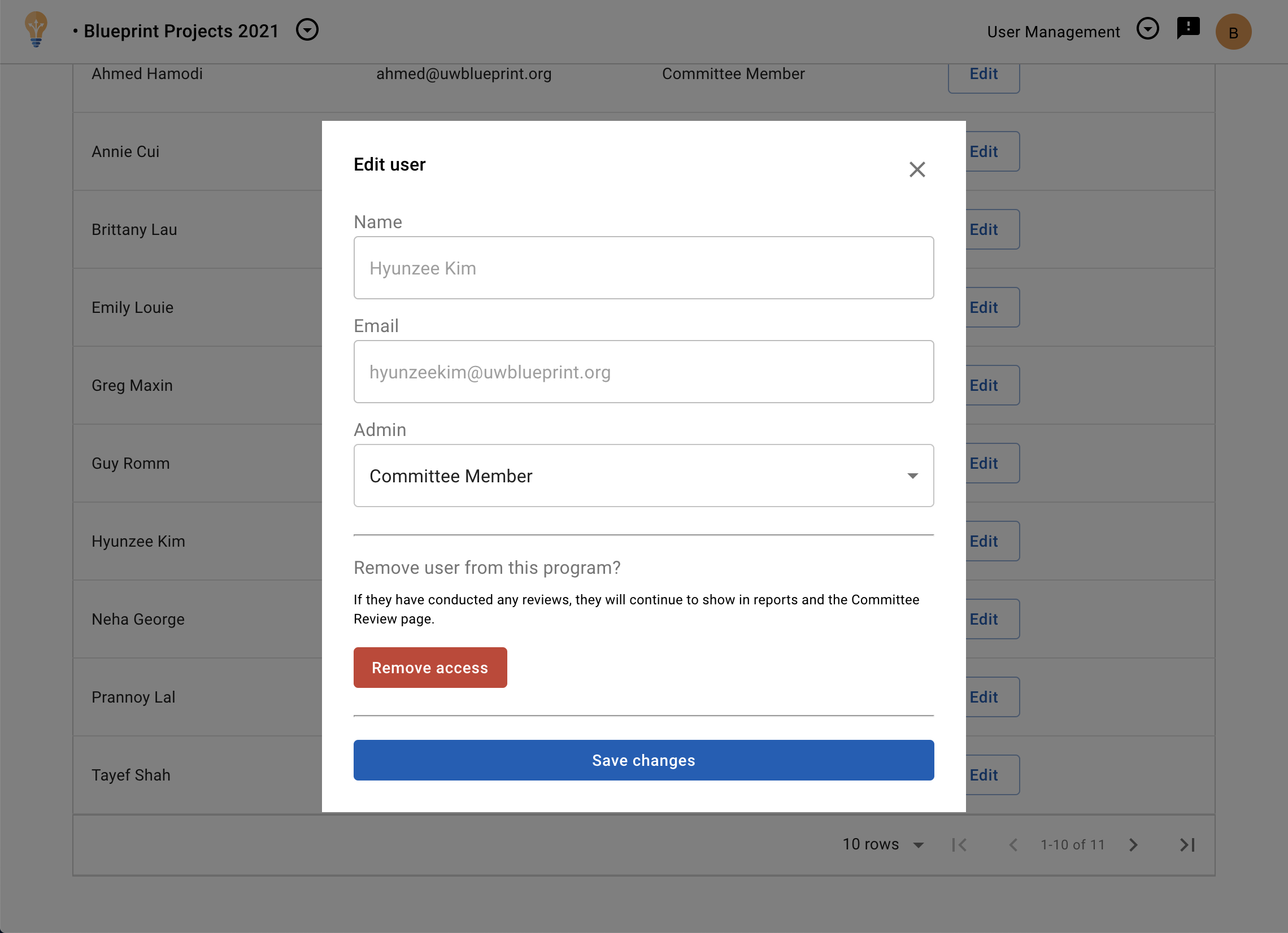 - Beside the user you want to edit, click Edit. A dialog should open.